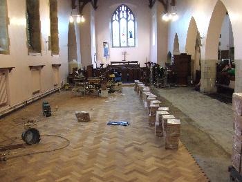 View of the main nave looking East. All pews replaced, awaiting the big clean !